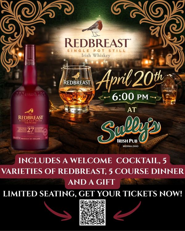 Join us at Sully’s for an exclusive Redbreast Irish Whiskey Tasting featuring a curated lineup—including the legendary Redbreast 27.